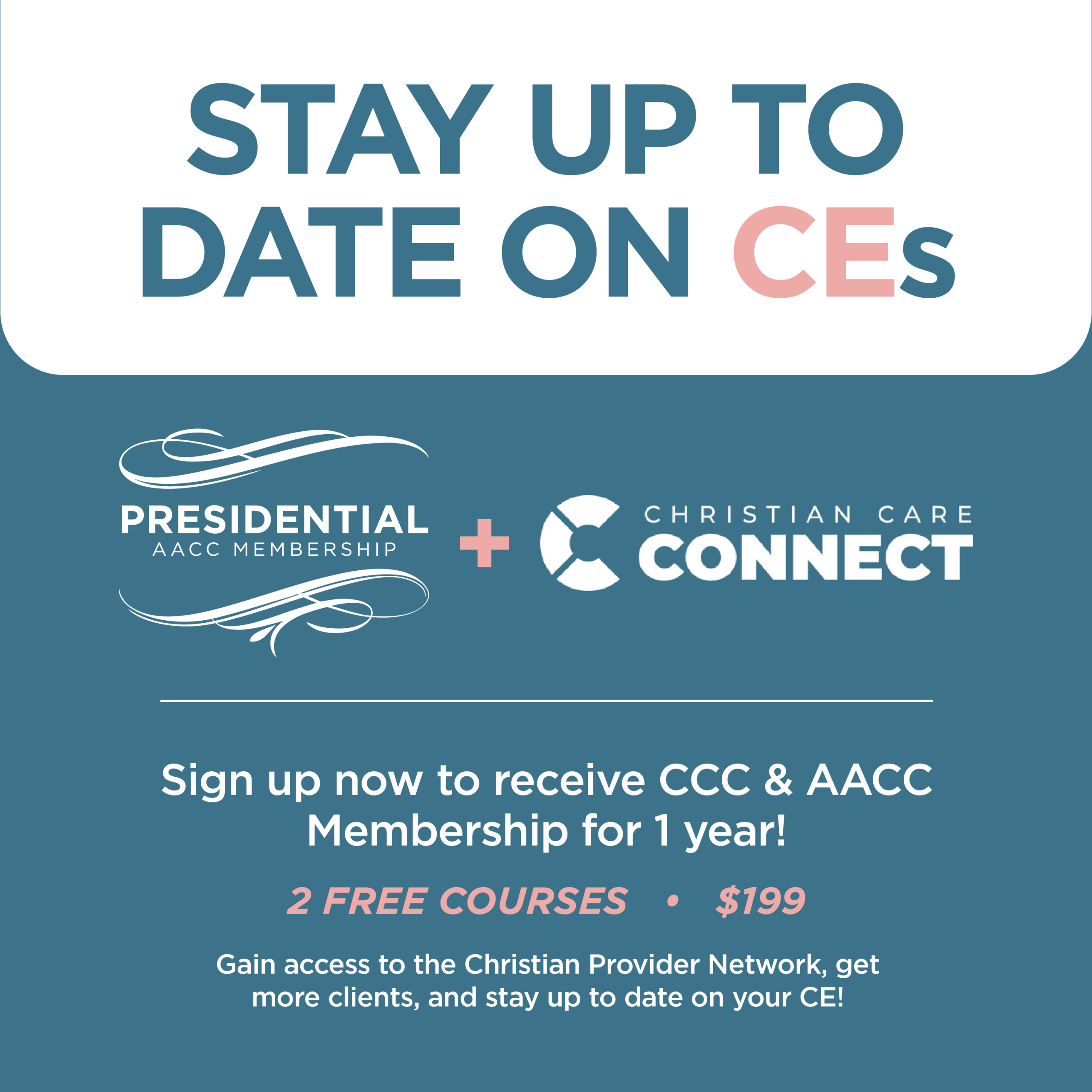 As a Christian mental health professional, you’re dedicated to making a positive impact on people’s lives. At AACC, we share your passion and are committed to equipping you with the resources to grow in your expertise and thrive in your calling. When you become a Presidential Member of AACC, you’ll receive access to world-class training, continuing education opportunities, and a community of thousands of like-minded Christian mental health professionals.