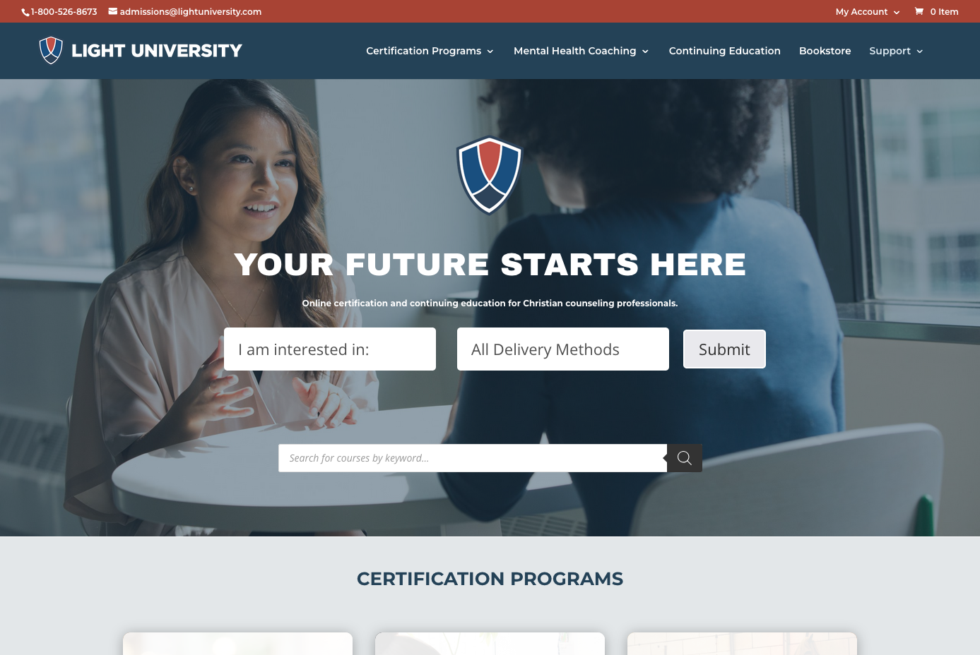 Light University, the educational division of AACC, offers self-paced and cohort-based online courses for continuing education and professional development. With course approvals from NBCC, ASWB, APA, NAADAC, APT, and other boards, Light University provides accessible, high-quality training for counselors, pastors, and lay caregivers alike.